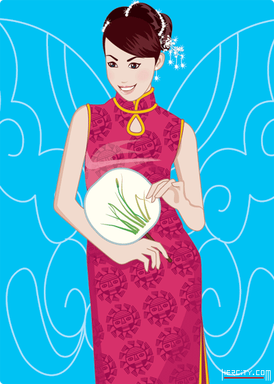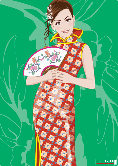 > 非常漂亮的矢量旗袍美女五張